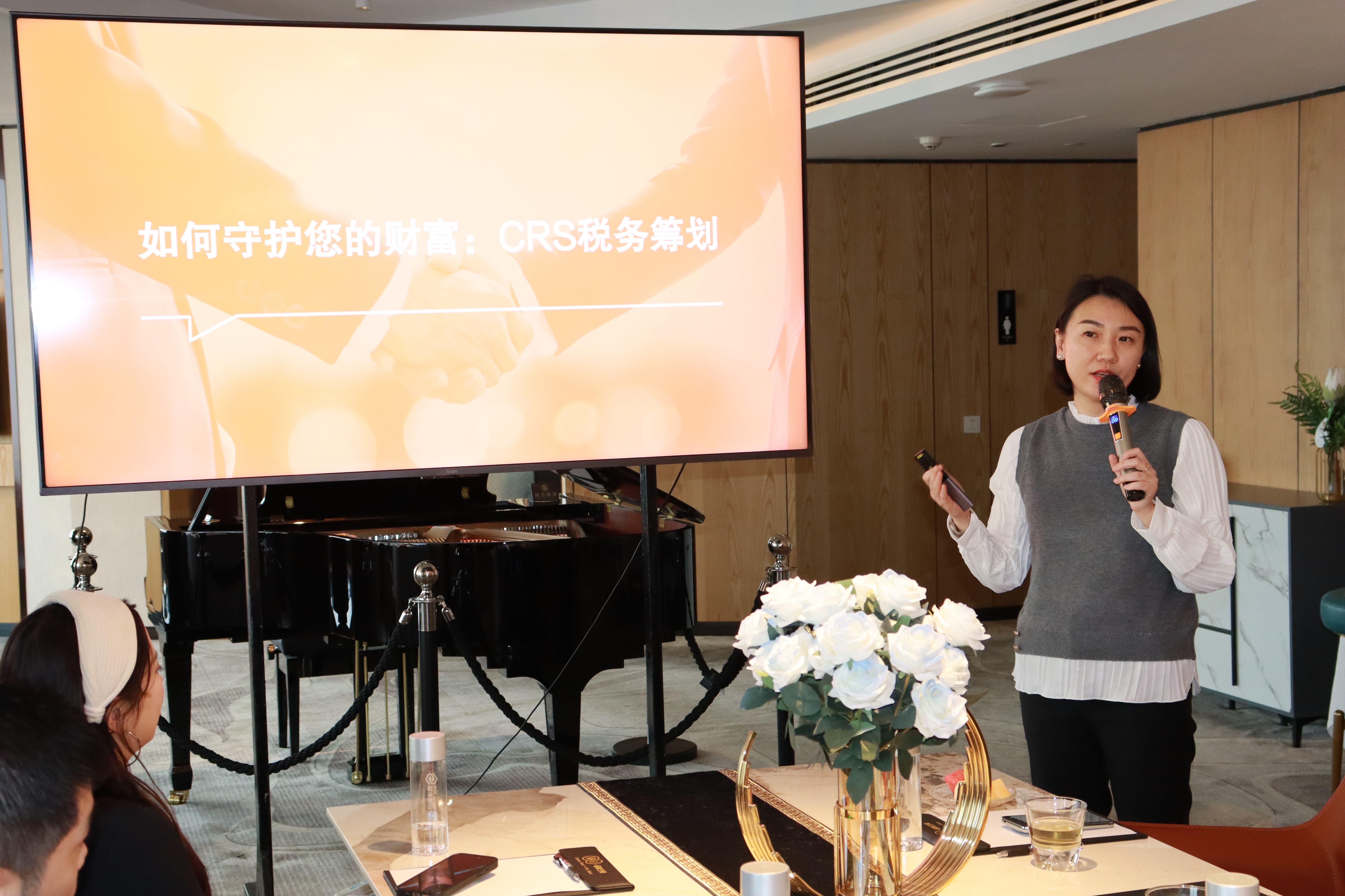 随后,润信家族办公室董事总经理顾娟娟女士与哈韦斯特开曼基金经理朱叶观先生一起畅聊香港金融历史,从金融制度、资金和产品三个方面回溯香港的金融发展之路,并结合港股最新市场动向推介“哈韦斯特 港股配售打新策略的私募基金产品“。推介从“我们如何赚钱?”“谁在管理您的资产?”“如何守护您的财富?”三个方面展开,为现场来宾拆解香港”全球最大的离岸人民币资金池“涵义、内资出海”超级联系人”、“超级增值人“角色内涵。
